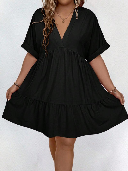 ✨Women's Casual Plain V Neck Batwing Sleeve Dress