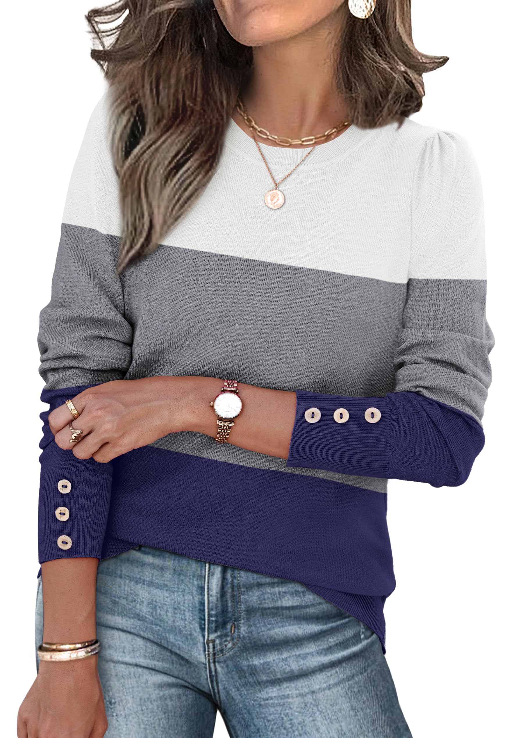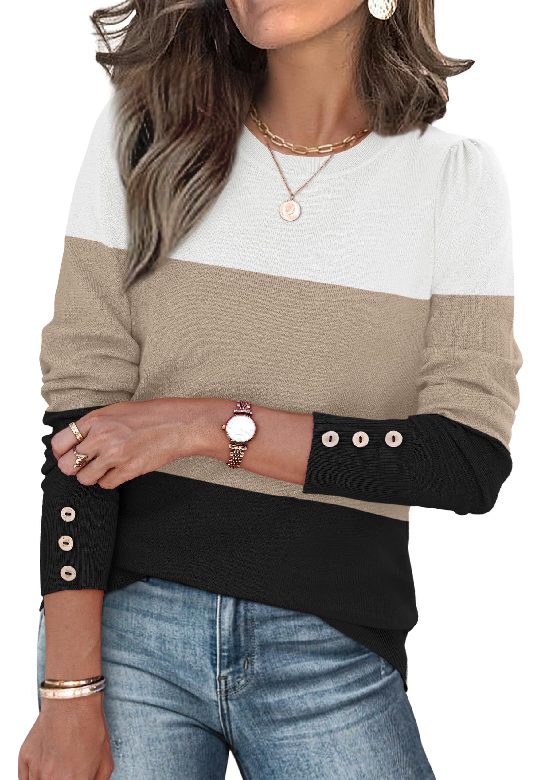 Long Sleeve Button Cuff Soft Knit Pullover Trendy Tops