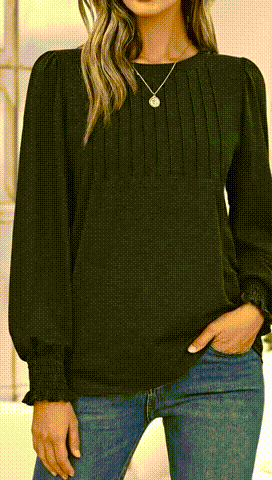 Women's pleated business casual blouses, long sleeve with smocked cuffs, flattering and versatile, perfect for office and daily wear!
