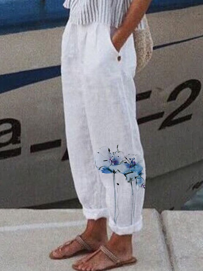 Women's Cotton Linen Daisy Casual Pants
