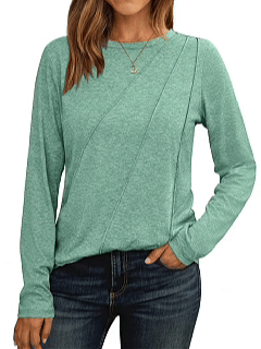Women's pleated long sleeve tunic tops, loose crewneck fit, soft and lightweight, perfect for daily casual and office wear!